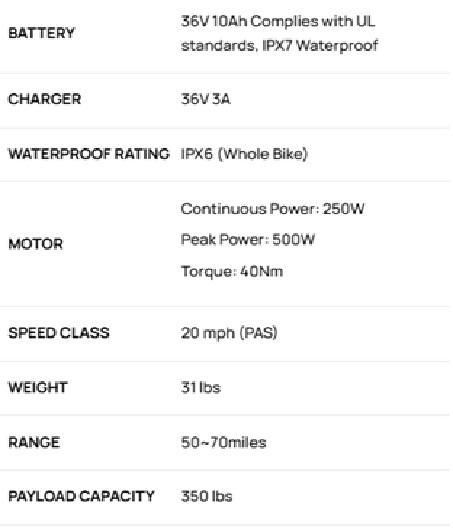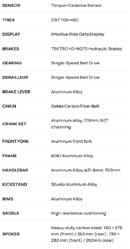 Key features: Next-generation silent-drive system (no gears). Low noise and maintenance. Lighter weight, power preserved. Class 2 (Pedal Assist), Torque and cadence sensors, dual piston hydraulic brakes, integrated frame lights, air suspension, and more.